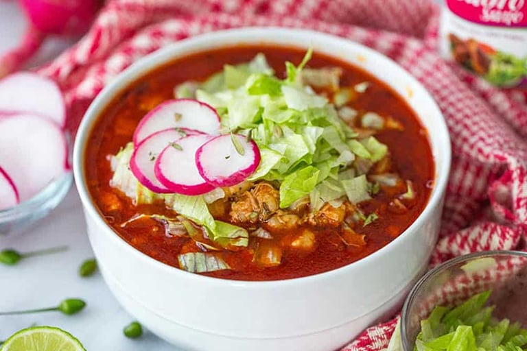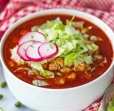 Preparado con maíz cacahuazintle, carne de cerdo suavemente cocida y un caldo especiado, acompañado de lechuga, rábanos, cebolla, orégano y limón. Ideal para reconfortar el alma en cualquier ocasión.
