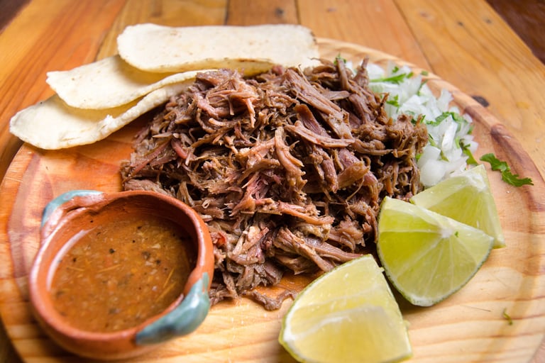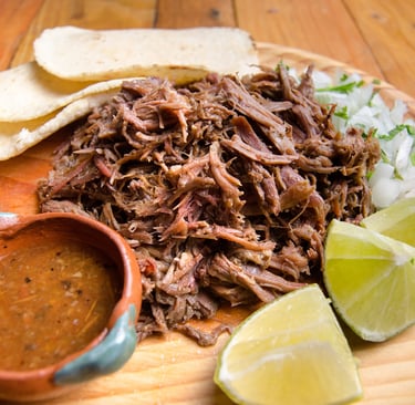 Carne suave y jugosa cocida lentamente al vapor con hierbas y especias, servida con su consomé, tortillas calientes y salsas al gusto. Un clásico de los domingos que conquista paladares.
